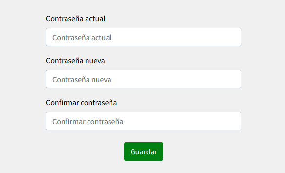 La primer opción, cambio de contraseña, nos redirige a la siguiente pantalla: